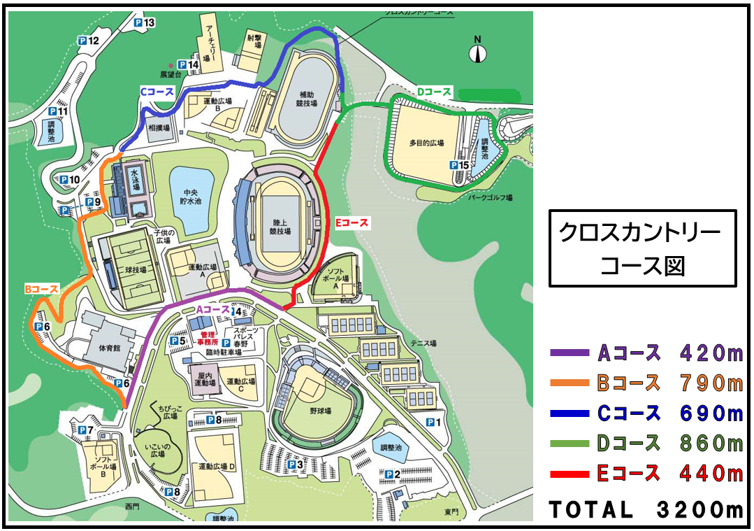 クロスカントリーコースは無料で開放しており、ジョギングやウォーキングなどでご利用いただける共用エリアとなっております。そのため、団体で一部を占有するような利用はご遠慮ください。また、多目的広場を周回するDコース(芝生エリア)ではスパイクの使用及び芝への負荷の強いトレーニングは禁止とします。皆様のご理解ご協力をよろしくお願いいたします。