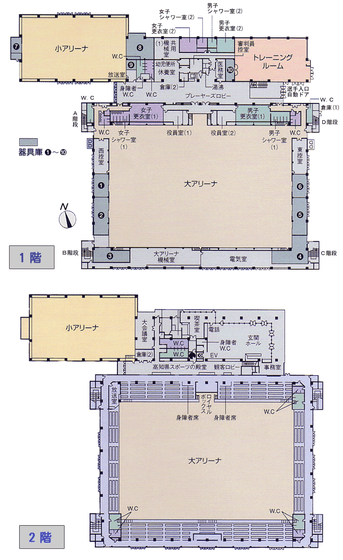 | 大アリーナ | 利用券(100円)用シャワー男性用6台/女性用6台 |