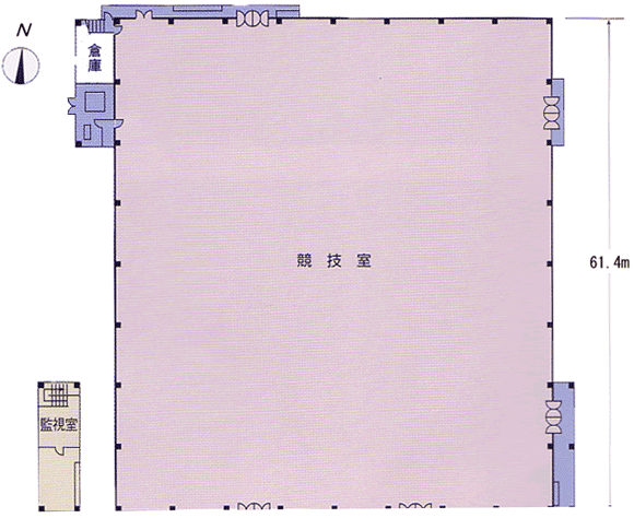 | 競技施設 | 61.4m×56.4m 野球練習、ソフトボール練習、ゲートボール/4面、ハンドボール/2面、フットサル/2面、グランドゴルフ、ミニトラック/1周120m、ドッジボール及びポールボール/各6面 |