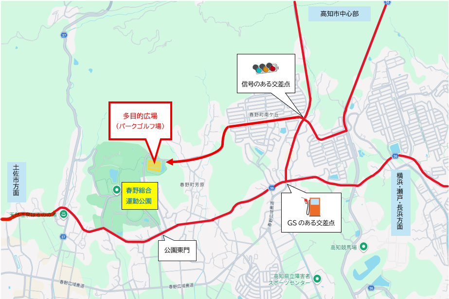 お車でパークゴルフ場に向かう場合は下記のルートでお越しください。