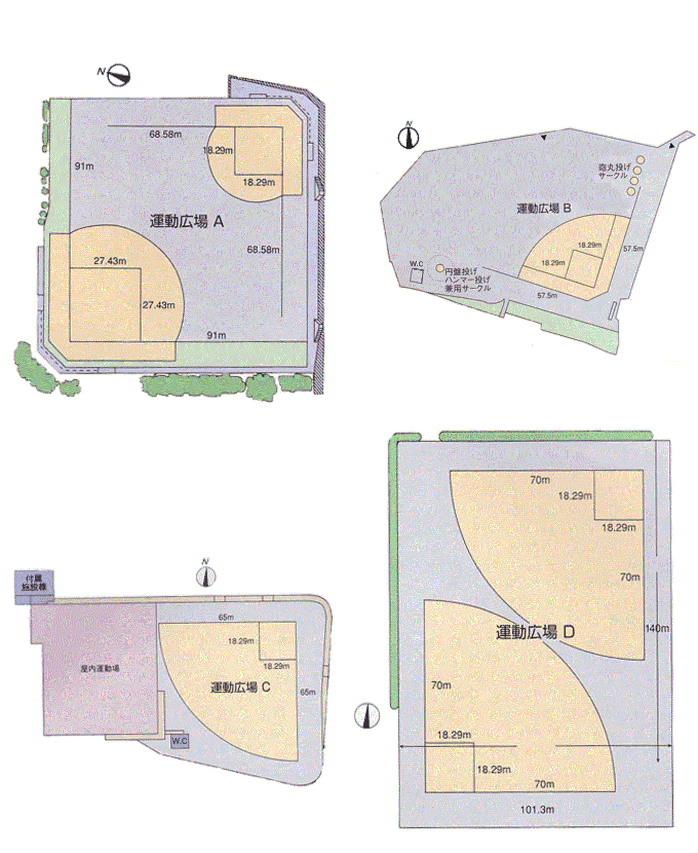 | 運動広場C競技施設 | ソフトボール場/1面、サッカー、レクレーション、高齢者用のニュースポーツ |